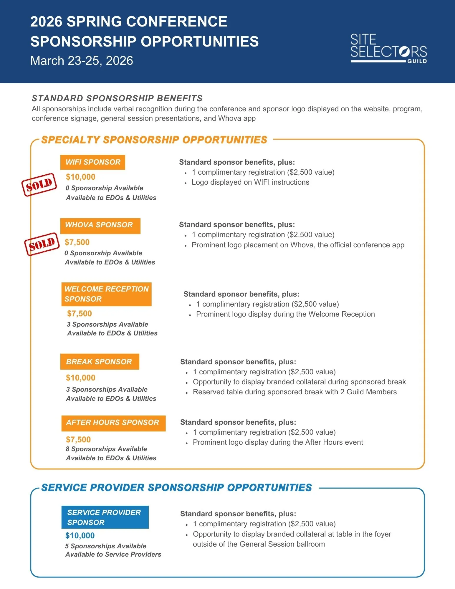 For even more direct networking opportunities with the Site Selectors Guild members, consider a sponsorship with many enhanced benefits – Download more info here.