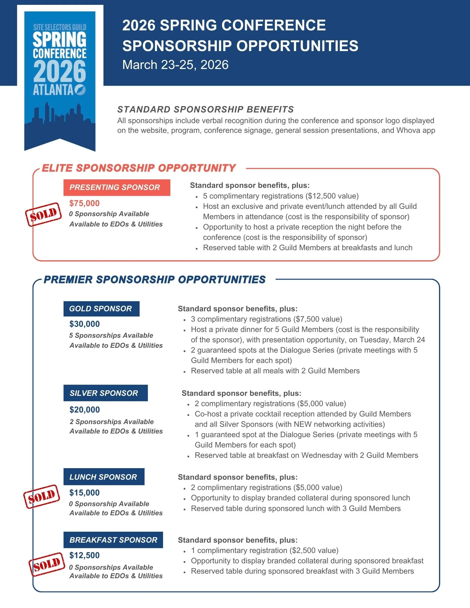 For even more direct networking opportunities with the Site Selectors Guild members, consider a sponsorship with many enhanced benefits – Download more info here.