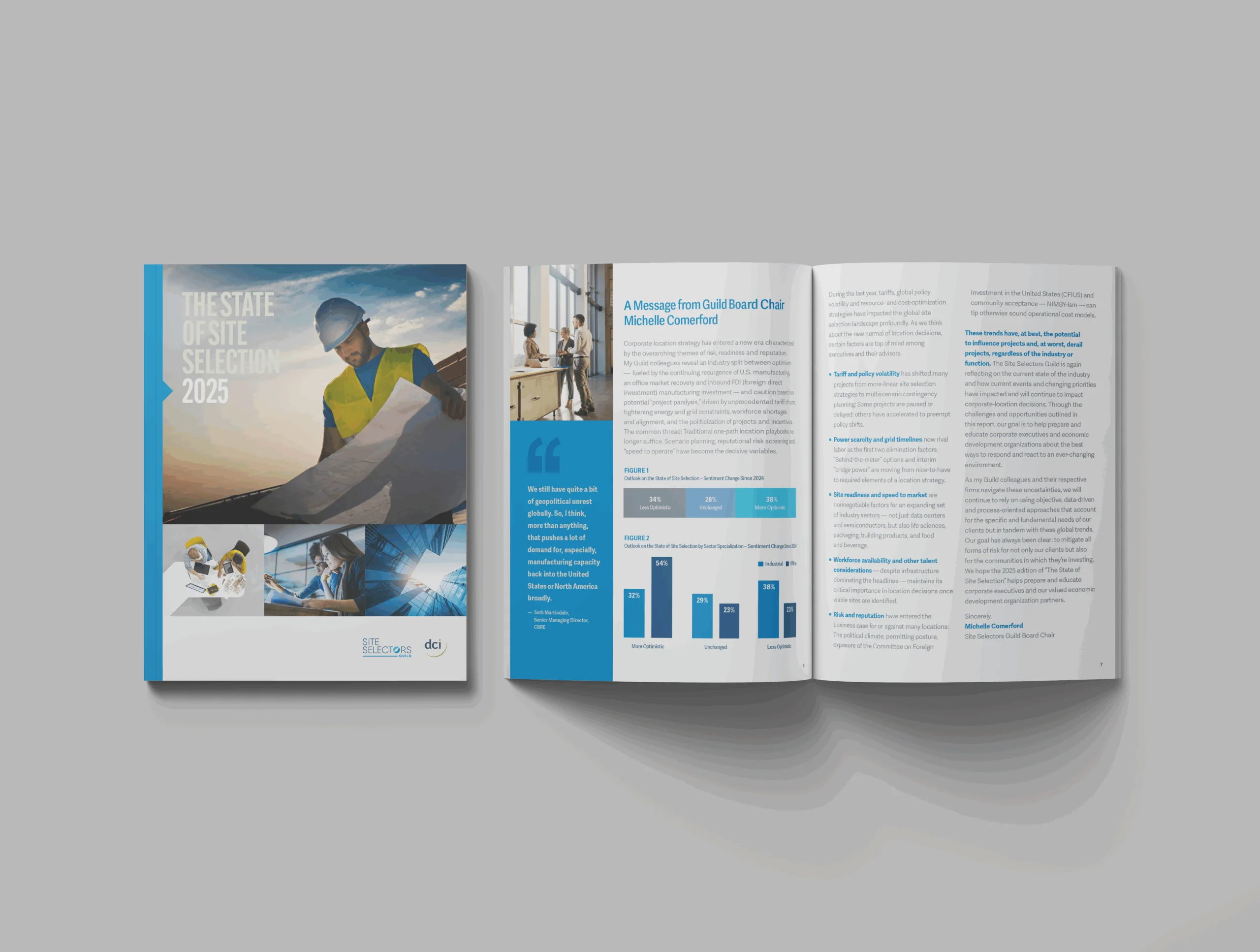 The Site Selectors Guild partnered with Development Counsellors International (DCI) for this year’s 42-page report, highlighting a site selection environment shaped by optimism from U.S. manufacturing growth, office market recovery, and increased FDI, alongside caution due to tariff changes, energy grid issues, workforce shortages, and greater scrutiny of incentives.
